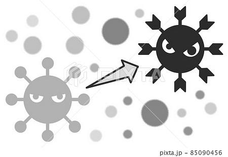病原体が変化して感染力の強い新型ウイルスになるイラスト