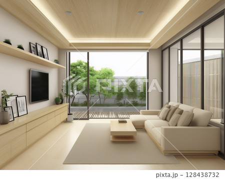 AI生成画像 モダンな和風新築住宅のリビングルーム