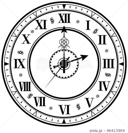 ヴィンテージ、レトロ、アンティーク、ラグジュアリー、ローマ字数字の華やかなデザインの壁掛け時計