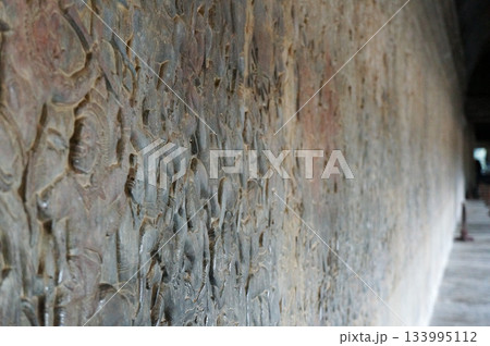 複雑な模様が入ったアンコールワットの建物内部の様子