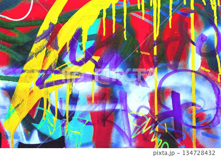 Colorful Abstract Graffiti Wall Texture with Yellow, Green, Blue, Pink Spray Paint in Urban Street Style