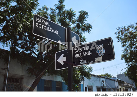 Valparaiso, Chile - October 17, 2025: Colorful houses with street art murals on Almirante Montt street. The steep cobblestone road winds through the historic Cerro Alegre district under a blue sky