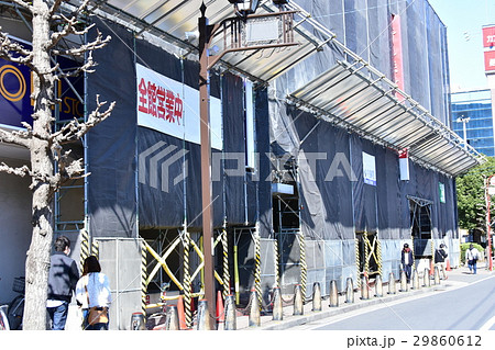 日本の東京都市景観 5月。渋谷駅再開発…(渋谷駅西口出入口付近の壁面も覆われる予定)=3日
