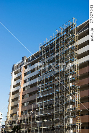 修繕工事を始めようとしている日本のタワーマンションの風景