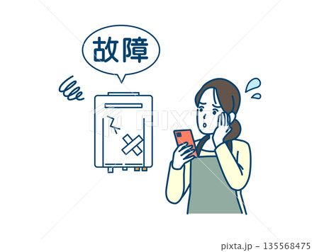 ガス給湯器が故障して困る主婦のイラスト