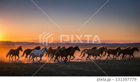 Elegant White Arabian Horse Galloping Through Vast Desert Landscape