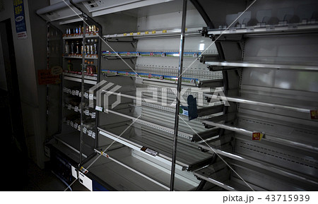 地震で空になったコンビニの棚