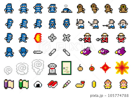 忍者ゲーム風ドット絵 キャラクターとアイテムセット