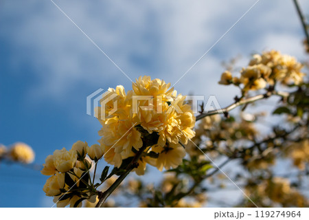 Detail of yellow roses in the nature, Madeira, Portugal