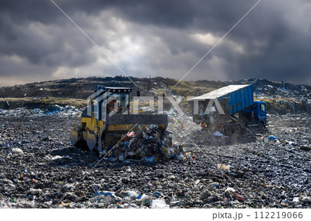 Landfill, large pile of waste. Nature pollution, environmental concept, eco activism.