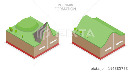 3D Isometric Flat Illustration of Mountain Formation, Tectonic Movement Process