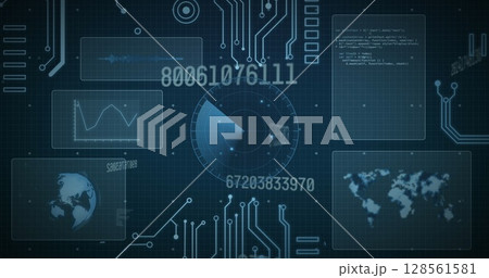 AI generated futuristic holographic interface with blockchain data visualization glowing blue network lines symbolizing digital transformation and advanced cyber technology