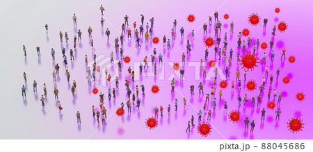 群衆とコロナウイルスのグラフィックイメージ / ウイルスの市中感染・感染者急増・変異株の脅威イメージ