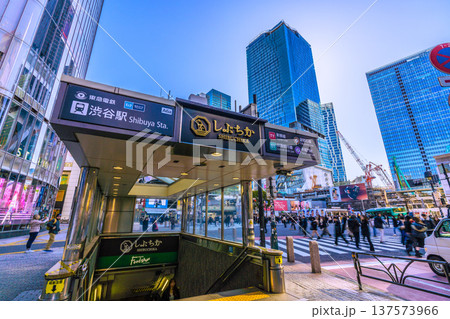 日本の東京都市景観 XEC株…夕景・渋谷中央街や東急プラザなどを望む=19日