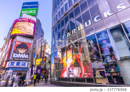 日本の東京都市景観 インバウンドに沸く渋谷。外国人観光客らで賑わう渋谷センター街.
