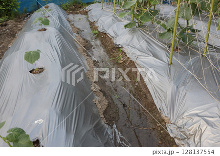 真夏のキュウリ栽培炎天下の様子 朝六時