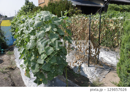 真夏のキュウリ栽培 連日の猛暑で枯れました。