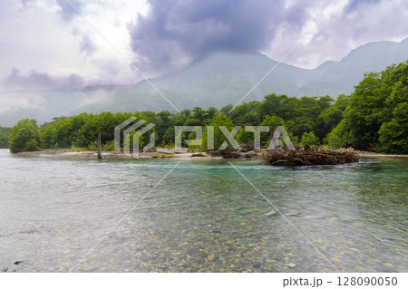 Jogasaki Coast at Ito Shizuoka Japan, Rocky riverbed surrounded by dense green forest in natural landscape
