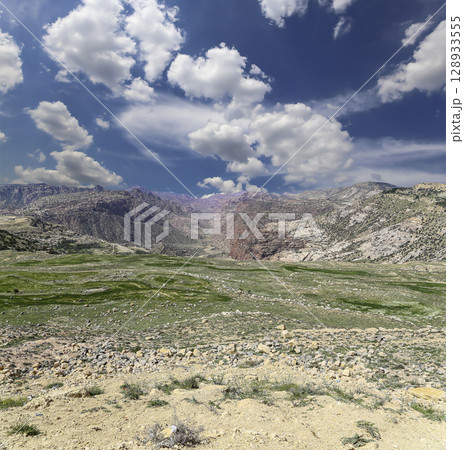 Typical mountain landscape, Jordan, Middle East (photography from a high point). Against the background of a beautiful sky with clouds