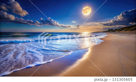 A breathtaking view of the serene sea along the coast of the United Arab Emirates, where crystal-clear turquoise waters meet the white sands under a radiant blue sky. The calm waves.