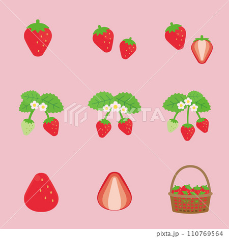 シンプルでかわいいイチゴのイラストセット(フラットデザイン)