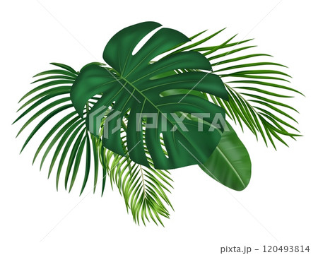 Tropical composition of green realistic palm leaves. For summer tropical design with various green leaves. Vector illustration