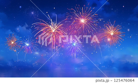 夜空に輝く花火とシルエットの街並み - 夏の祭典風景