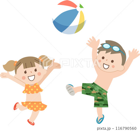 ビーチボールで遊ぶ男の子と女の子
