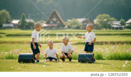 坊主頭の男の子(虫取り)