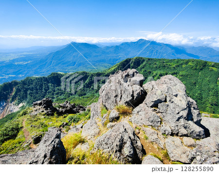 夏の妙高山登山(北峰頂上から焼山・火打山方面の眺め)