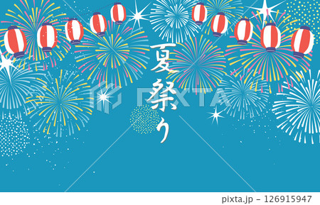 花火と提灯の夏祭りの和風なベクターイラスト背景