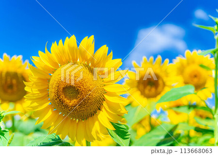 「埼玉県」夏空に映える向日葵 見沼田んぼ さいたま市