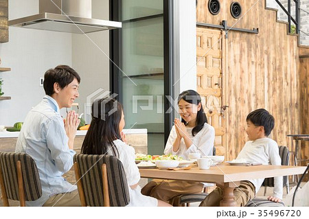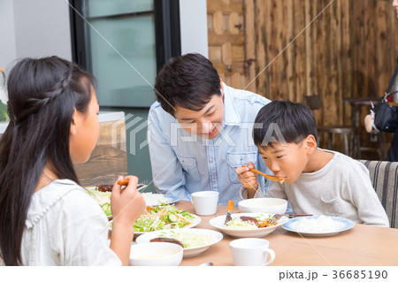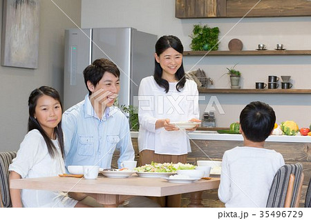 食事をする家族 父親 お父さん お母さん 母親 姉弟 生活感