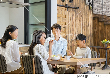 4人家族 食事をする家族 父親 お父さん お母さん 母親 姉弟 生活感