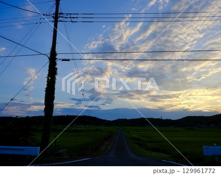 夕日に照らされる田んぼ