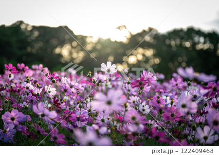 淡い光の差すコスモス畑