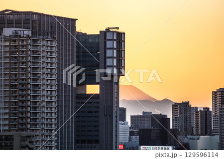 夕日に照らされる東京の町並み