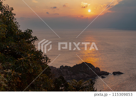 《和歌山県》円月島に沈む夕日・南紀白浜