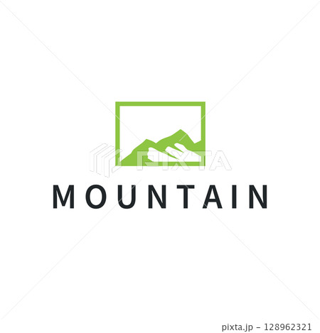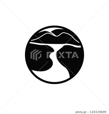 A cool, simple, minimalist mountain logo concept for natural scenery and beautiful black silhouettes of nature, design for poster illustration template or business product brand.