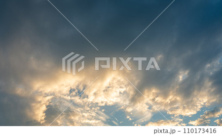 日没 夕焼けの染まる雲と空 背景素材 青色