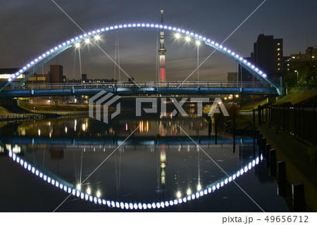 中川ふれあい橋とスカイツリー