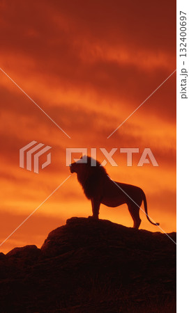 Wolf silhouette mountain peak sunset dramatic sky wilderness solitude nature landscape adventure dusk. lone wolf stands rocky cliff bathed golden