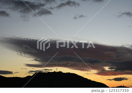 奈良若草山初秋の夕景 生駒山の上空で流れいく雲と奈良の街#21