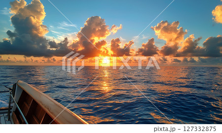 Stunning ocean sunset view from boat with vibrant hues