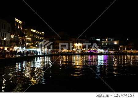 Nightlife at Old Venetian Port Chania with Reflections