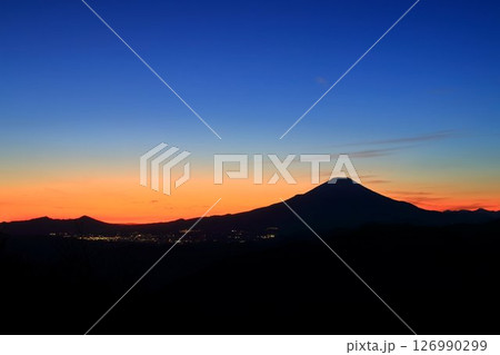 (神奈川県)横浜桜木町駅付近の街並み 富士山遠望 トワイライト