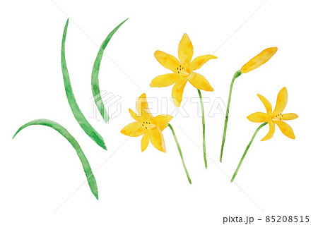 水彩で描いた黄色のユウスゲの花 白バック 透過背景