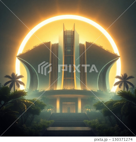 Illustrative Icon of a Colorful Japanese Temple in Elegant Design with Vibrant Colors and Minimalist Geometric Outline