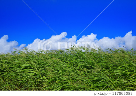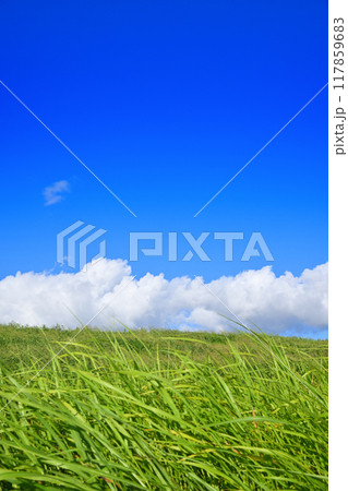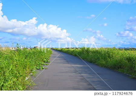 青い空 白い雲 夏草 夕陽ケ丘付近 さいたま市