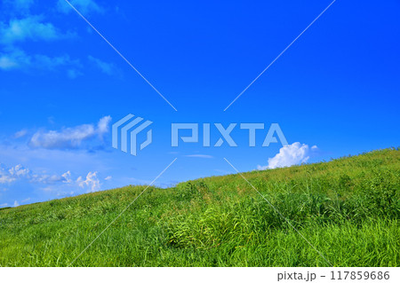 青い空 白い雲 夕陽ケ丘付近 荒川土手の風景 さいたま市